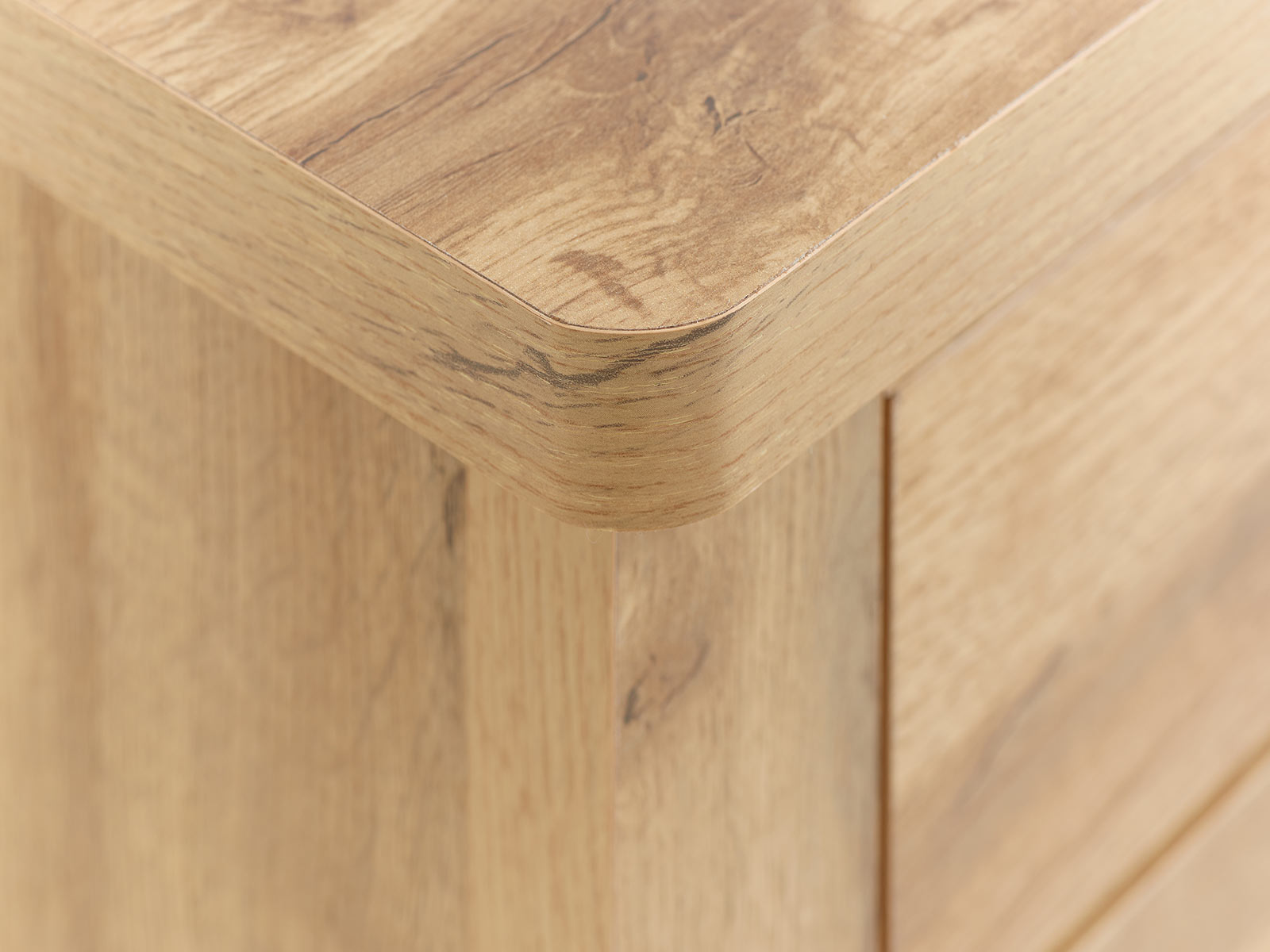 The Hampstead highlights the prominent grain of the wood creating a rustic homely feel. The range is constructed from particleboard with a paper laminated finish.