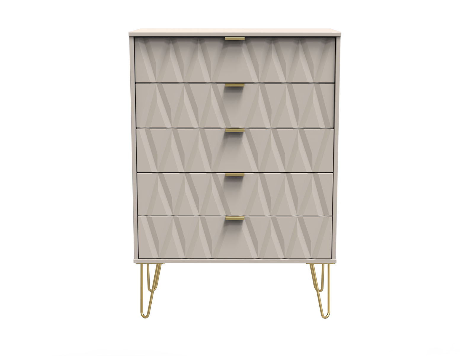 Say hello to contemporary cool with the Diamond range, with distinctive patterned drawers and a variety of colour options available to complement any interior design. Gold metal handles and sturdy hairpin legs complete the storage solution.