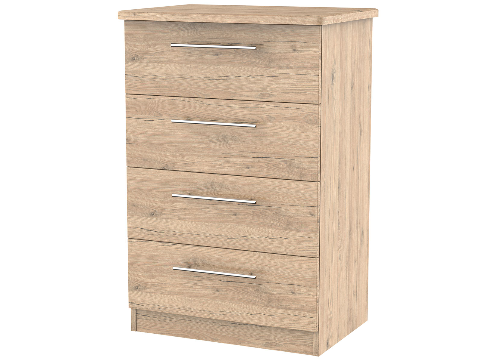This 4 drawer mid sized chest of drawers is practical and stylish. Perfect for any home as a free standing storage unit.